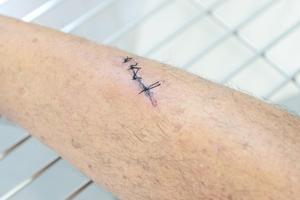 - a broken tooth, wounds on eyebrow, and lips requiring sutures, and